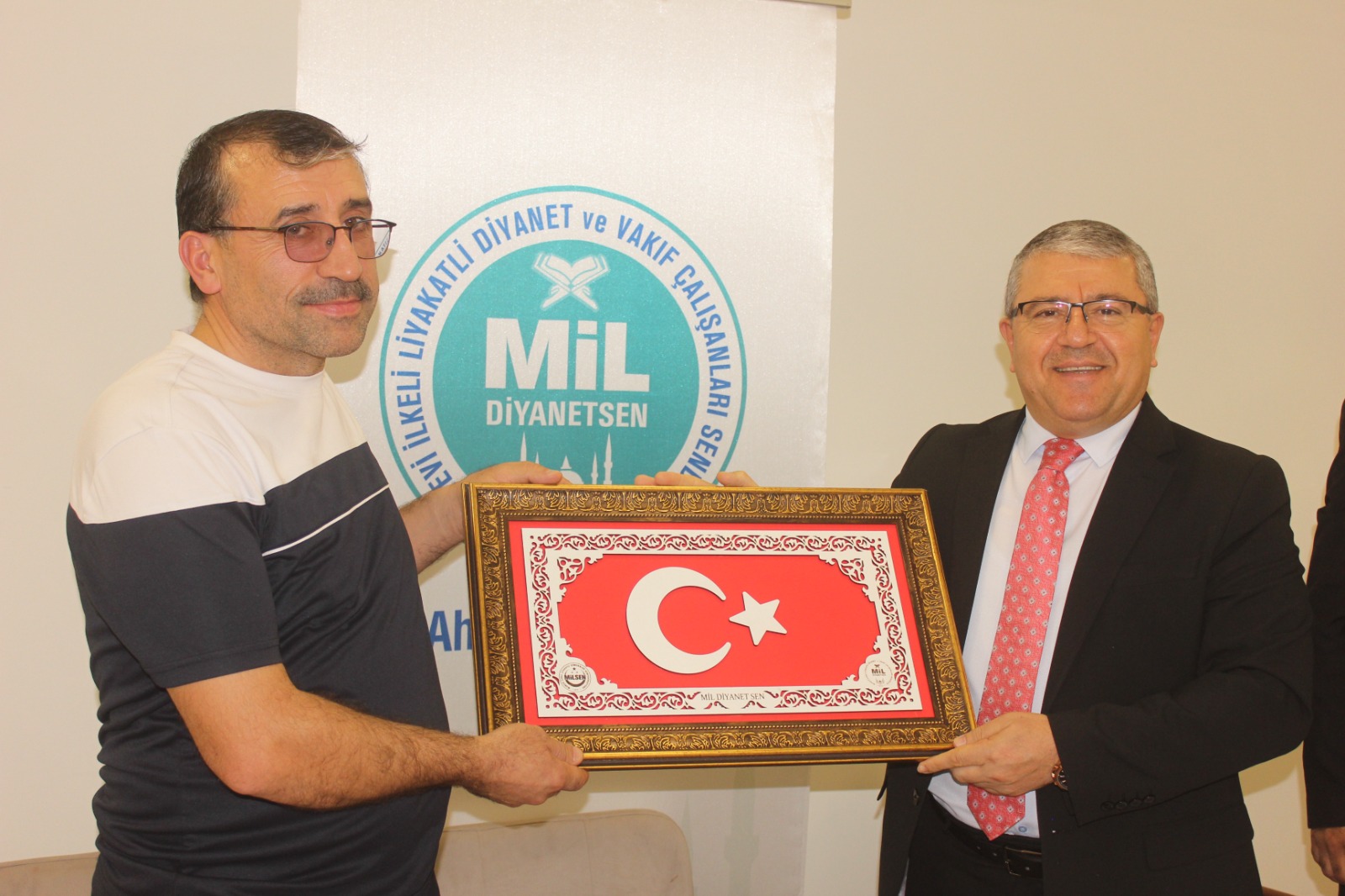 Programda Mil-Diyanet Sen Afşin İlçe Başkanı Feyzullah Özdemir’e Genel Başkan Gül tarafından Özel işlemeli bir Türk Bayrağı hediye etti.